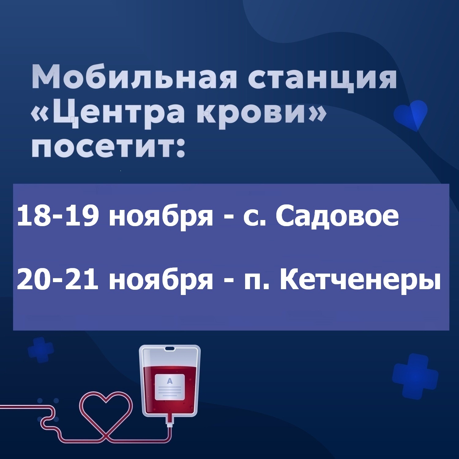 Жителей Сарпинского и Кетченеровского районов Республики Калмыкия приглашаем принять участие в выездной донорской акции!